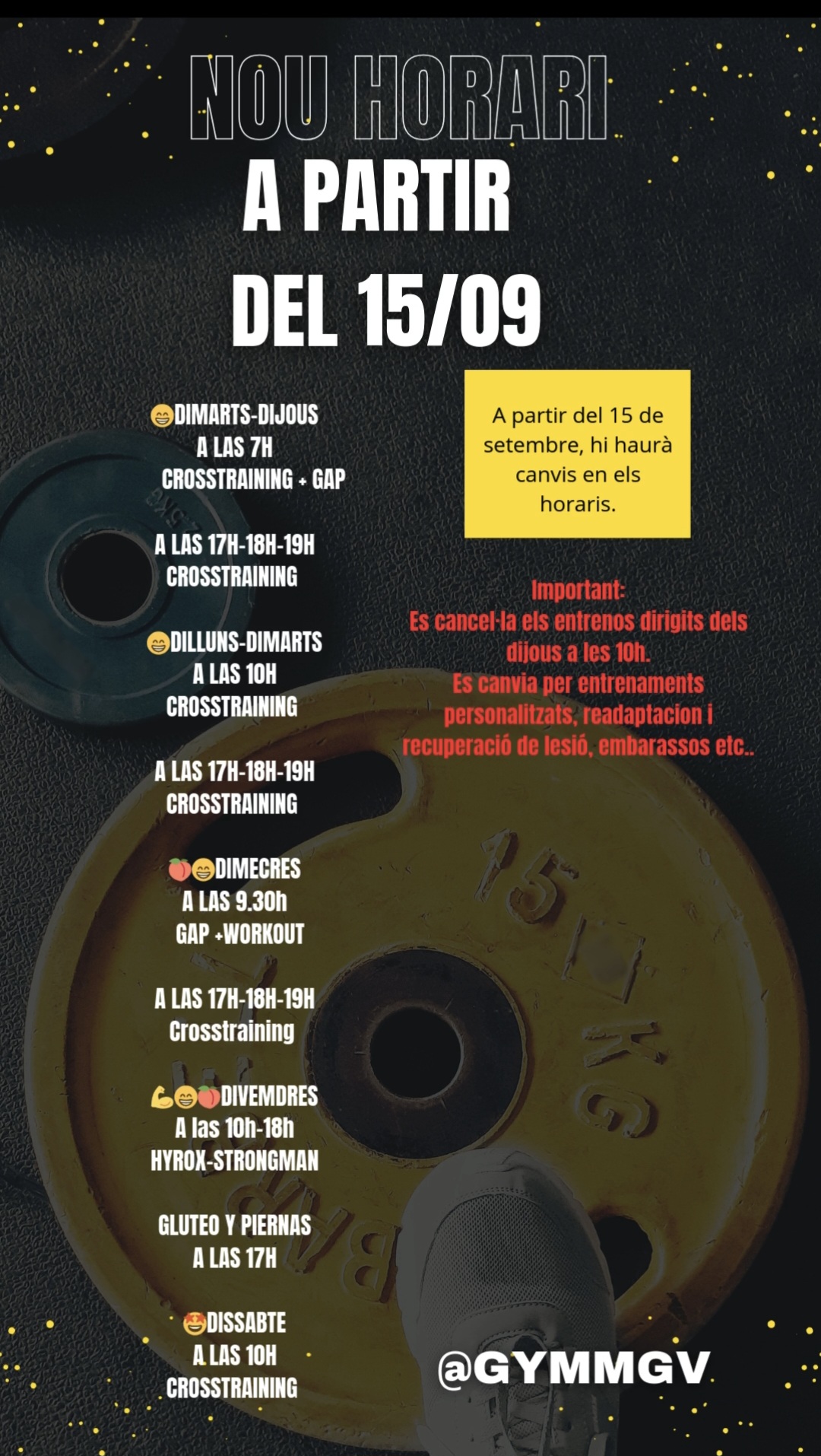 Gym MGV Llinars / Notícies / Nou Horari